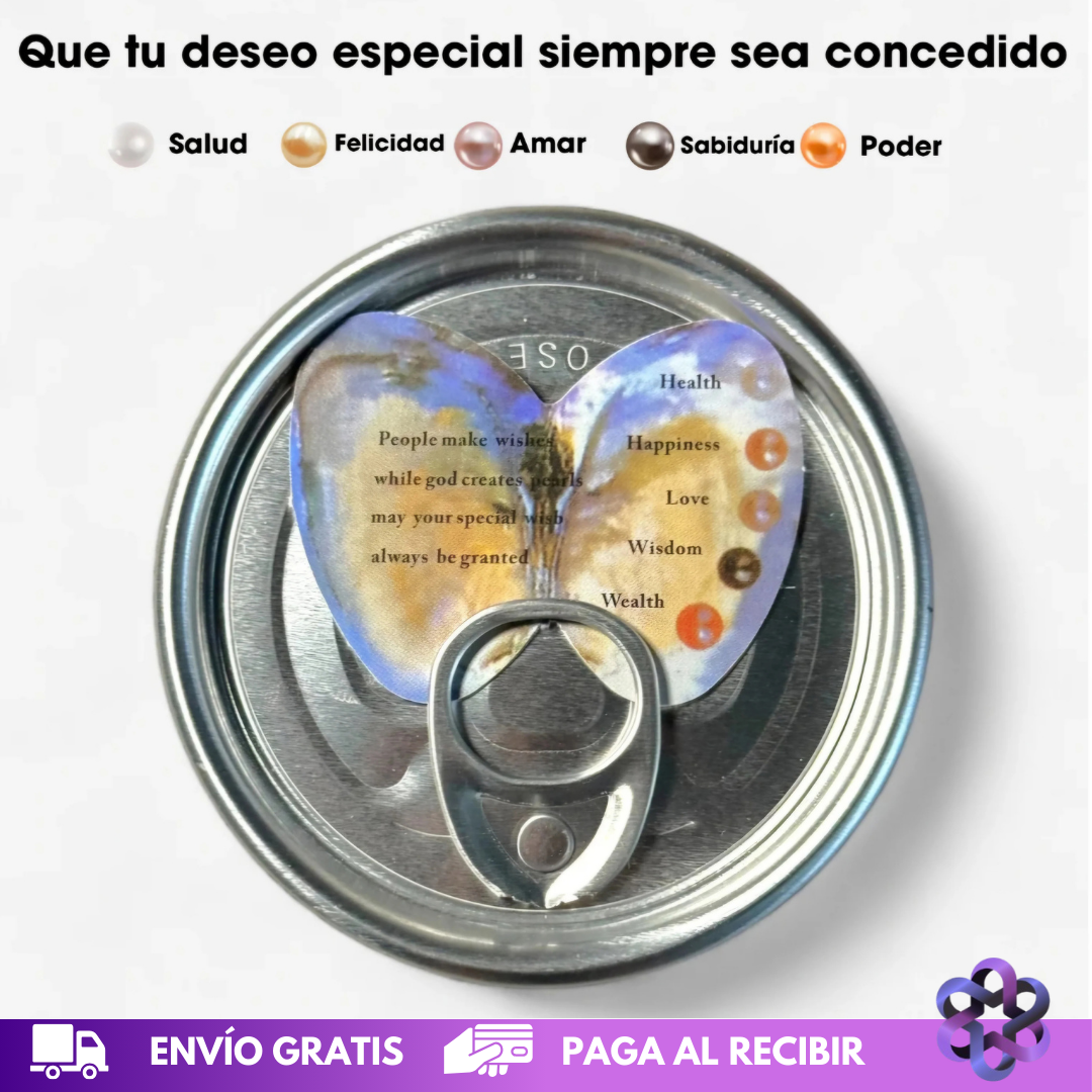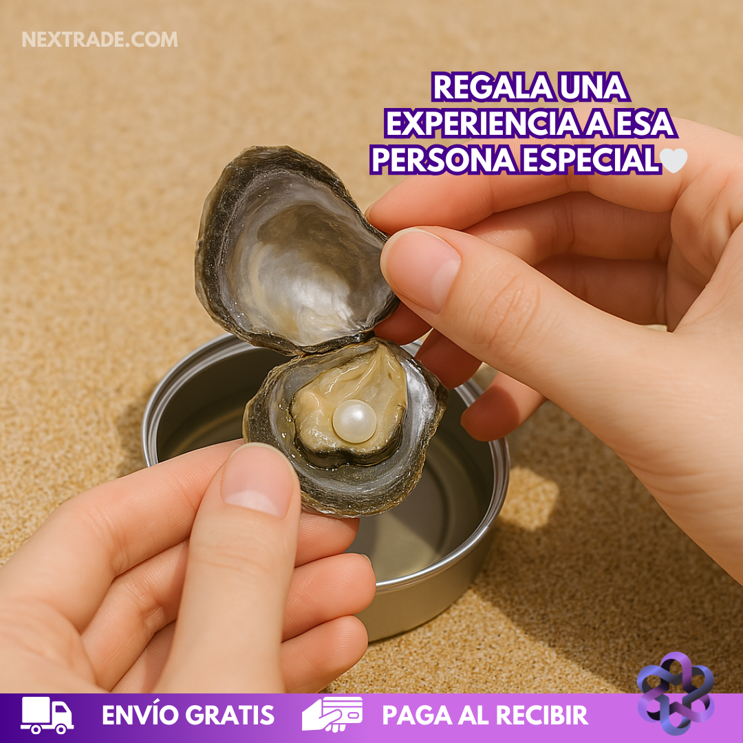 contiene una ostra real sellada al vacío, que en su interior guarda una perla sorpresa en uno de cinco colores posibles. Cada color representa un significado diferente: amor, sabiduría, salud, fortuna o éxito.🧡🤍🩷🤎💜